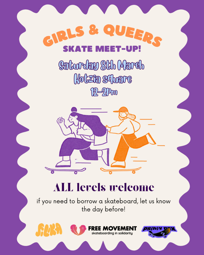 Thus, as this day of the year has come again, we also want to ensure that are voices are getting heard and that our presence is strong, so this article apart from an homage to the greek feminist history, is also an open call to join us on the 8th of March at 12.00 p.m. – 14.00 at Platia Kotzia for a non-traditional skaters gathering. Afterwards we can collectively march together. See you rolling on the streets.